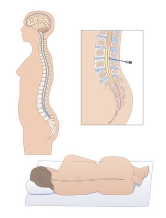 ლუმბალური პუნქციის დროს პაციენტი უნდა დაწვეს გვერდზე, რომ ნემსი შეიყვანონ ხერხემლის ქვედა ნაწილში არსებულ ორ მალას შორის.